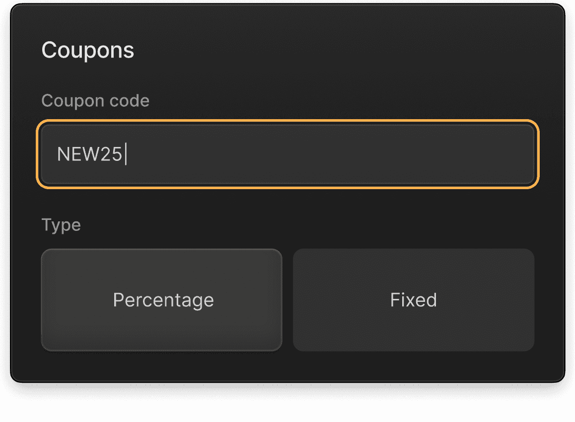 Set your rules—trial duration, end-of-trial behavior, coupon type (percentage or fixed) etc—and let Meteroid handle the rest. No manual tracking, no engineering hassle.