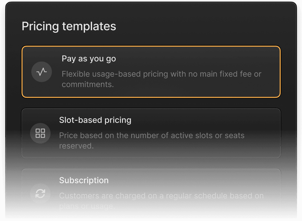 Meteroid supports out of the box pricing models ranging from fixed fees to the most advanced usage-based structure.